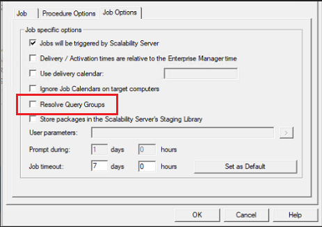 By checking this Job specific flag, you get true dynamic evaluation of the condition for a computer group. That evaluation takes place when the Domain Manager sets up the job for execution.