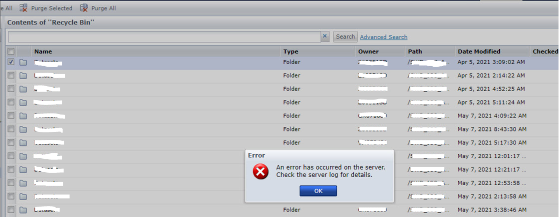 When an object is deleted from the Library, it's moved to the Recycle Bin before actually delete it. It's important to review the Recycle Bin often and not leave old objects there since it's possible that after several months (or years) there may be issues while trying to delete those old objects: