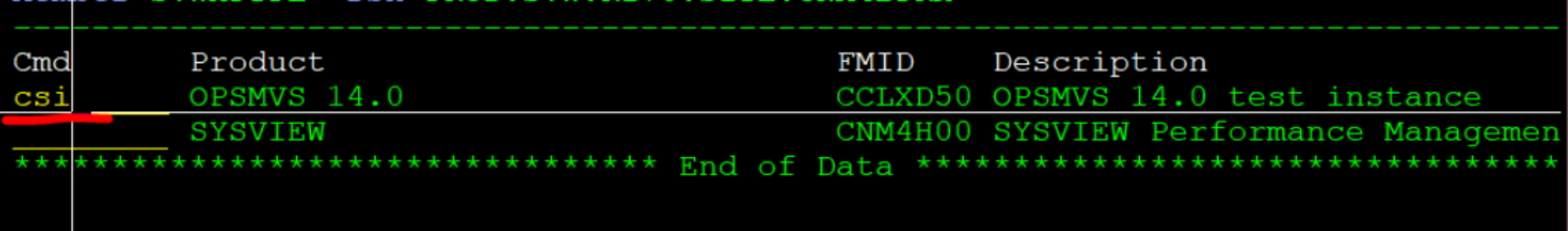 From that screen, issue subcmd in front of the product name and get to MODIDS and CSIQUERY