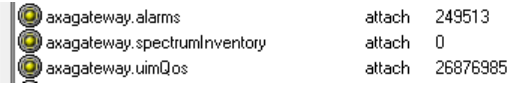 - queue "axagateway.uimQos" or "axagateway.alarms" is XXX MB and/or