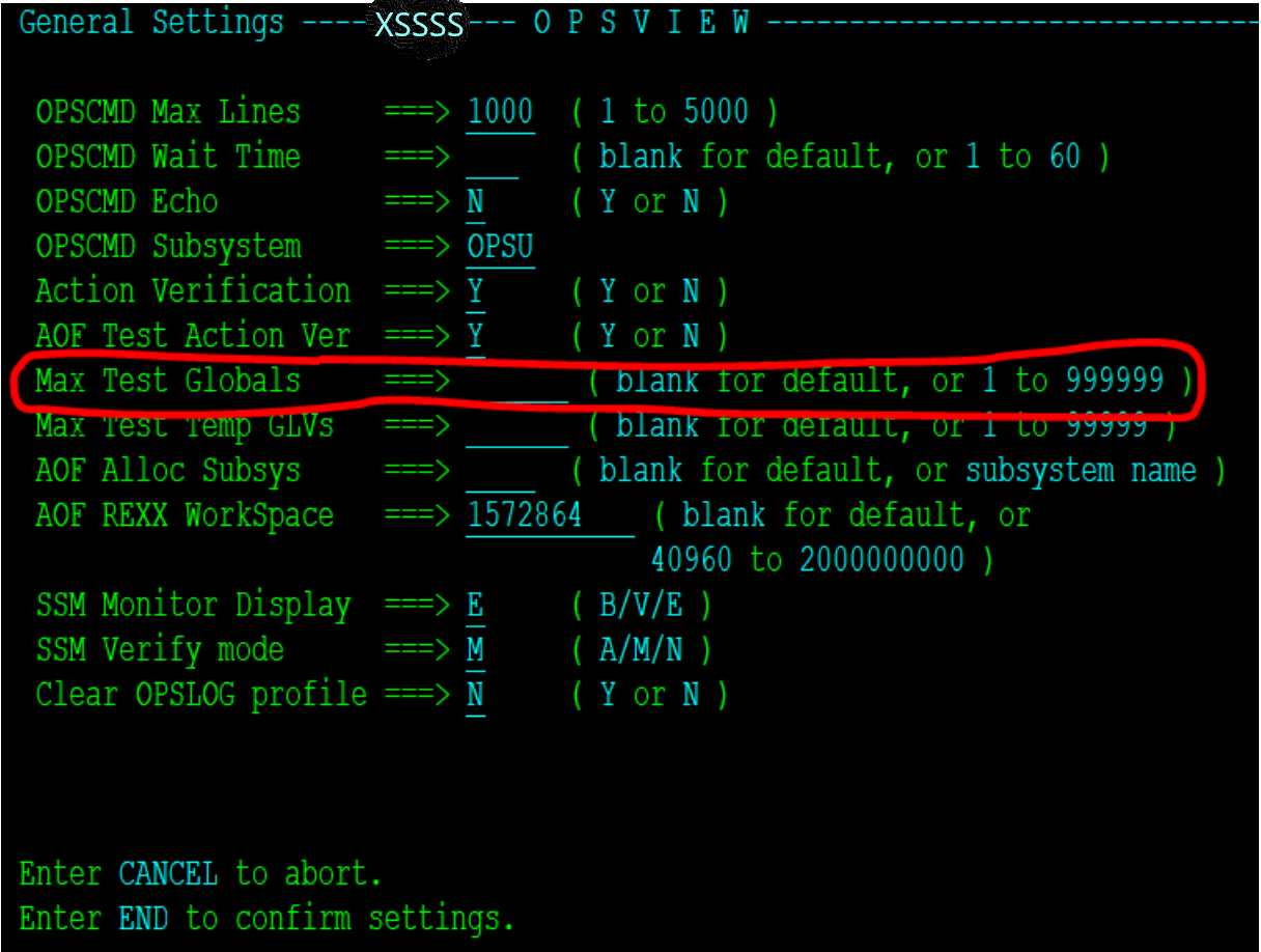 I was able to recreate the error you are getting by lowering the value of the parameter "Max Test Globals" in the OPSVIEW panel 0.1. The default value for this parameter is the value of the OPS parameter GLOBALMAX. Please, check the value of GLOBALMAX in the panel 4.1.1 and then go to the panel 0.1 and set "Max Test Globals" to a number a little higher than GLOBALMAX. If the problem persists, increase the value again until you find a value that solves the problem.