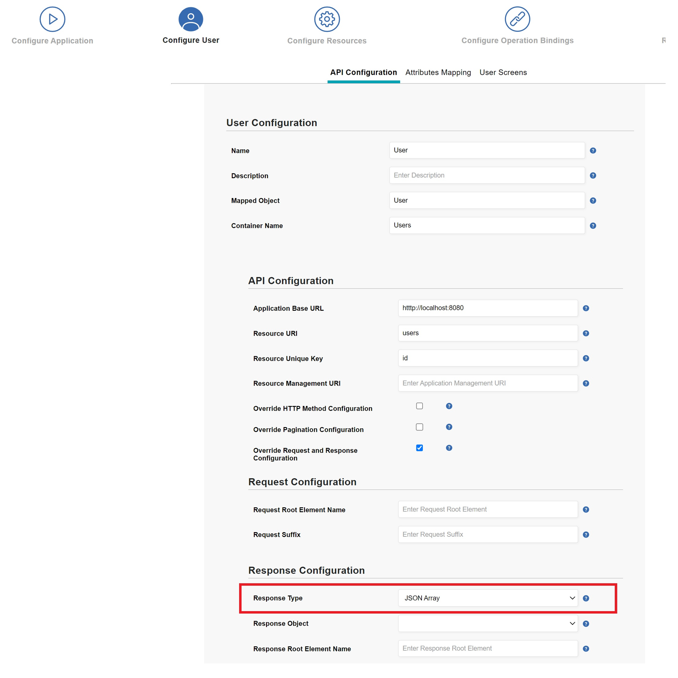 Please select the "Response Type" as "JSON Array" under API Configuration -> Overriding Request and Response Configuration -> Response Configuration option for User resource as shown in the following image. Save changes and then deploy.