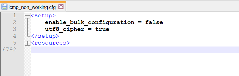 If this doesn't work, it might be necessary to backup the corrupted icmp.cfg, redeploy the probe, and then manually add the resources section to the new deployed .cfg
