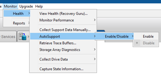 AutoSupport can be Enabled or Disabled by going into SANtricity under Monitor > Health > AutoSupport