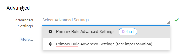2. Specify and enable impersonation on the new primary rule advanced settings