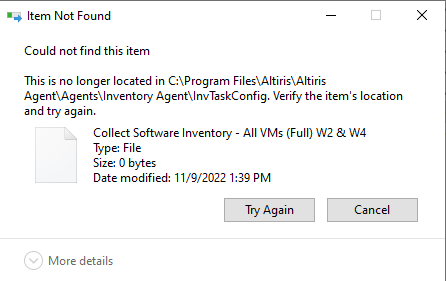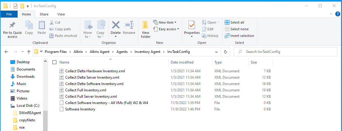 Corrupt XML files in C:\Program Files\Altiris\Altiris Agent\Agents\Inventory Agent\InvTaskConfig. A 0 KB files shown in this directory as seen here: