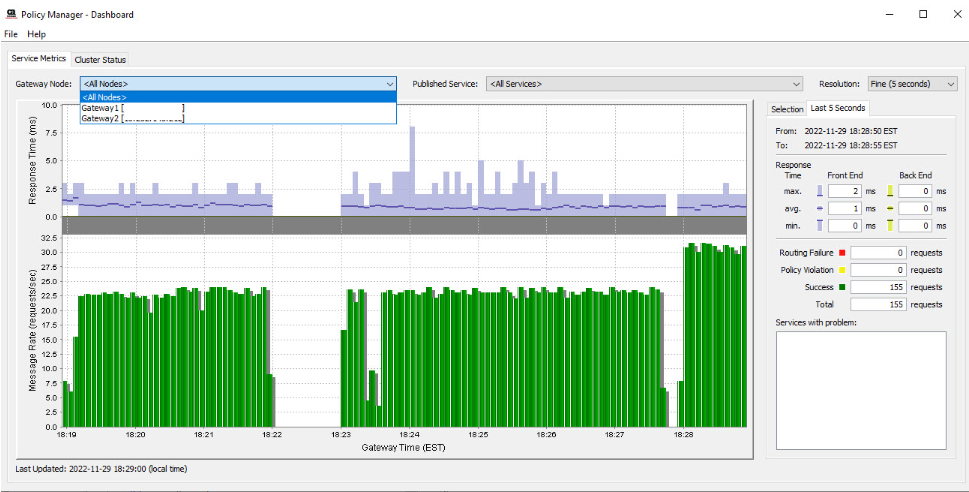 The getaway collect service metrics data that is store in the SSG DB, this data is displayed by Policy Manager Dashboard