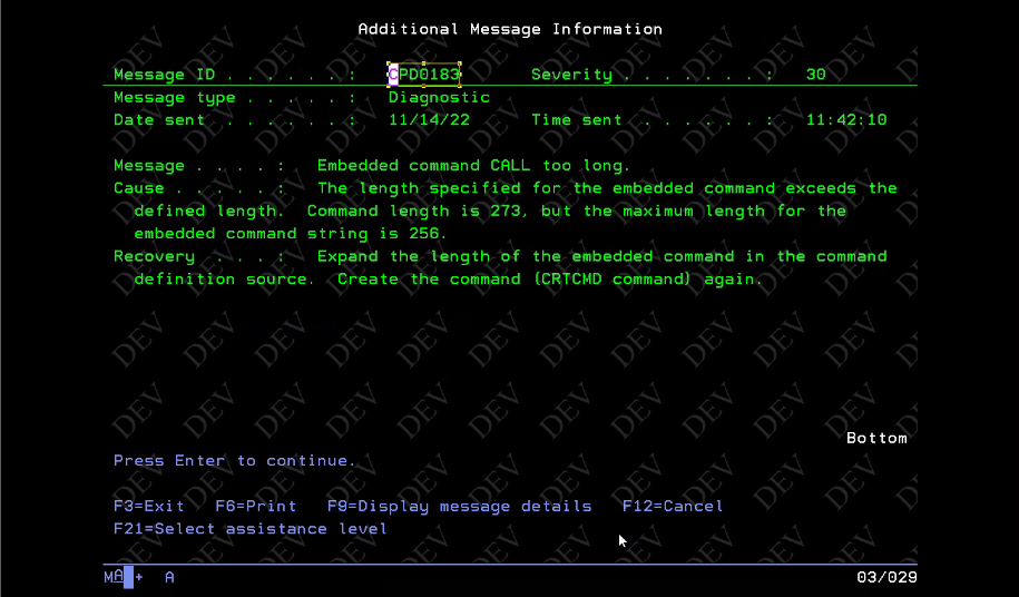 When running the command YEXDMDLIST, error is received