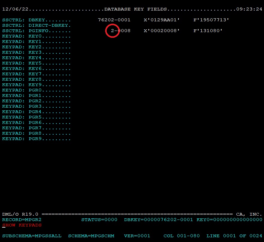 Once the record is OBTAINed, issue the SHOW KEYPADS command. The resulting screen will show you which page group the OBTAINed record is in.