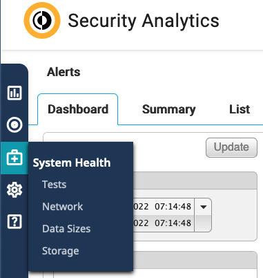 The System Health tests are available in the Web UI under System Health -> Tests. This allows you to enable, disable, or get the status of the health tests. The tests are available from all menus in the Web UI.