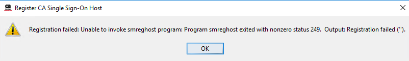 "Registration failed: Unable to invoke the smreghost program".