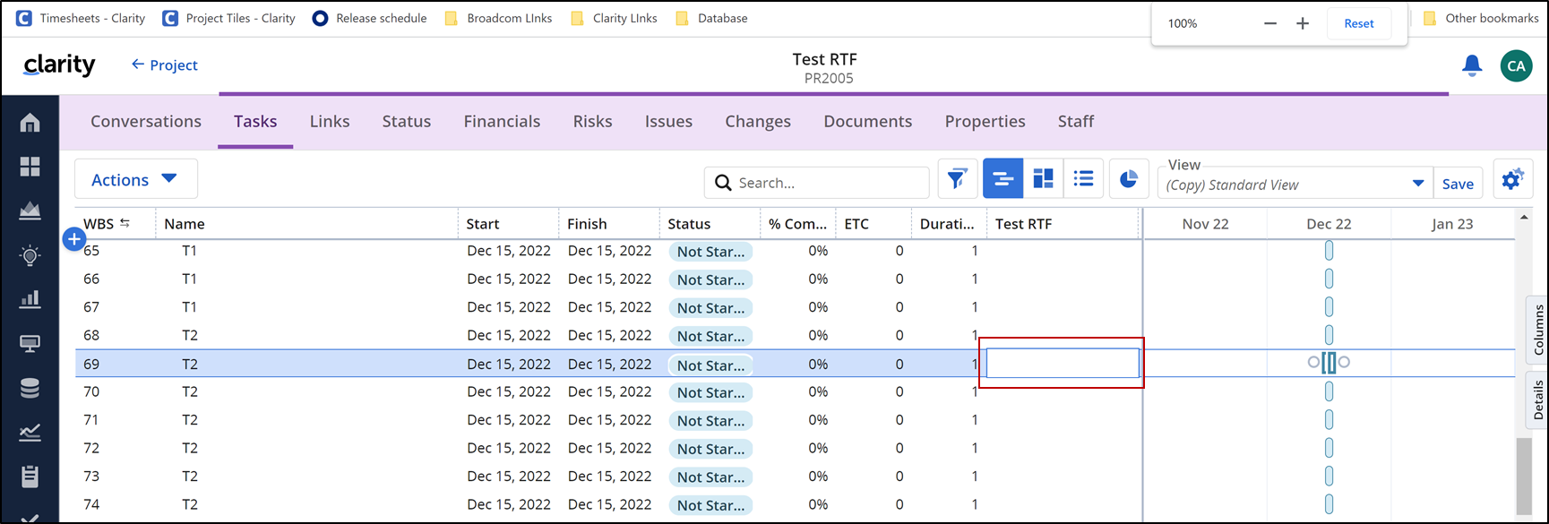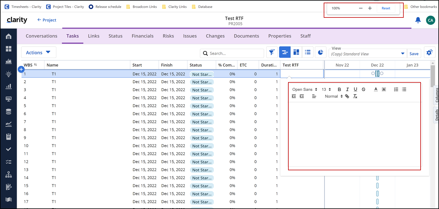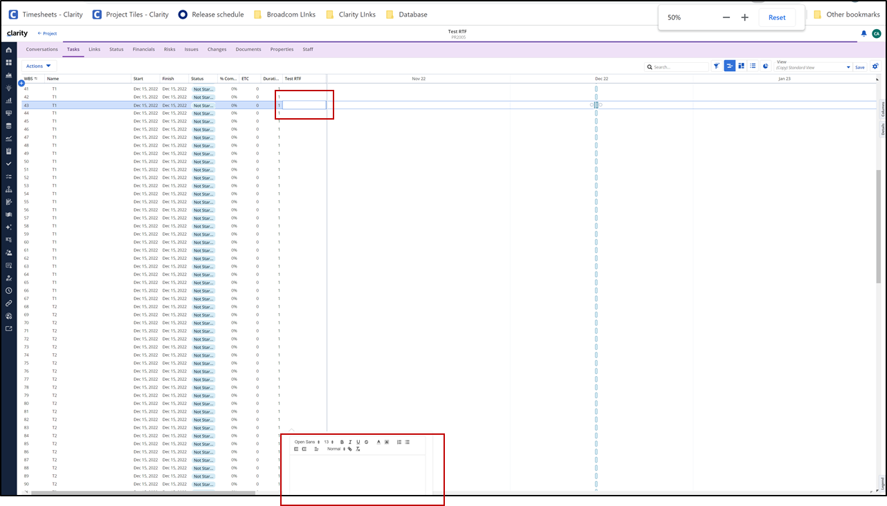 Rich Text Field editor is not rendered properly in tasks timeline view when there are more number of tasks on project