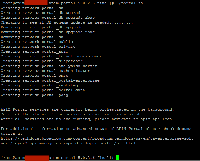 - then deploy the Portal by executing the portal.sh script, which should be successful