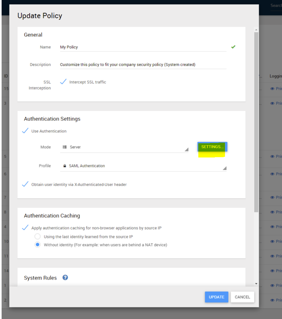 SAML authentication (Server Authentication) is setup on the web isolation proxy