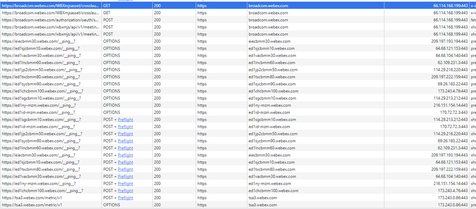 2. Source: All Authentication users, Destination: webex.com, Request Header: OPTIONS/POST, Action: Pass