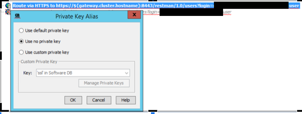 Workaround: Choose "Use no private key" option for Route Assertion to get a response using https://${gateway.cluster.hostname}:8443