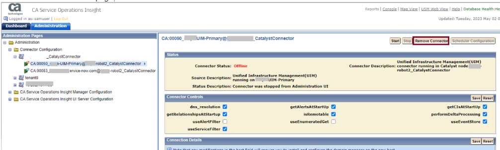 Also, upgrade the UIM connector to version 3.9.5. It can be found on the connector download page here: CA Service Operations Insight Connectors