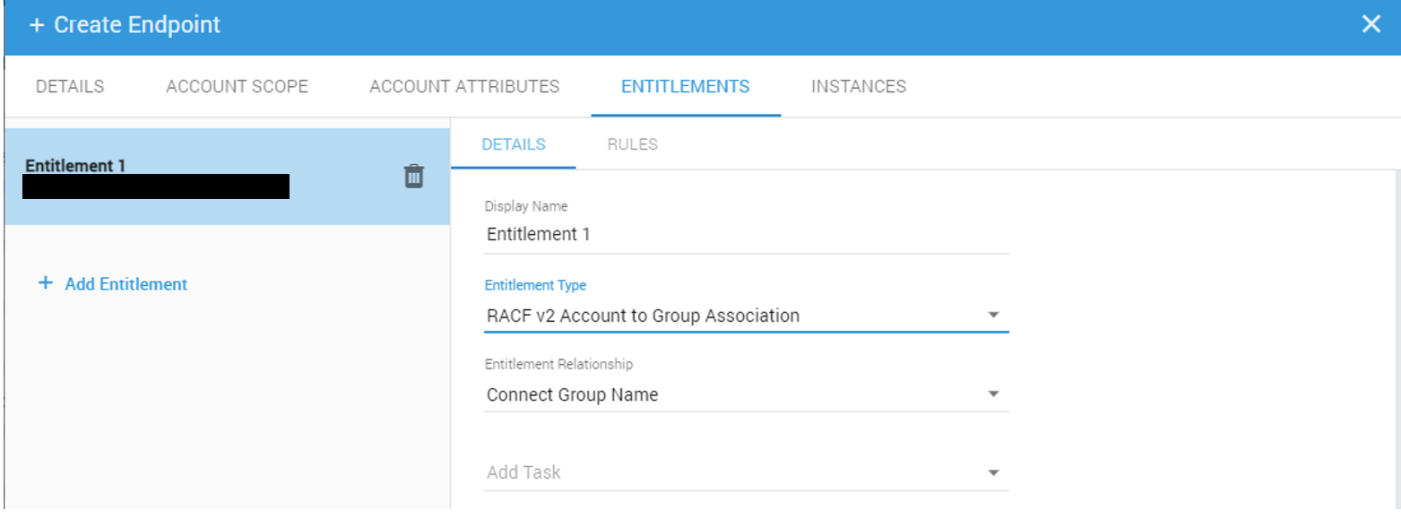 When trying to create a RACF Endpoint in the Identity Portal Admin UI. While selecting an Endpoint type as RACF, in the Entitlements section, we see an option " RACF Account to Group Association" under Entitlement Type. But the same option is not available while trying with RACF V2 Endpoint.