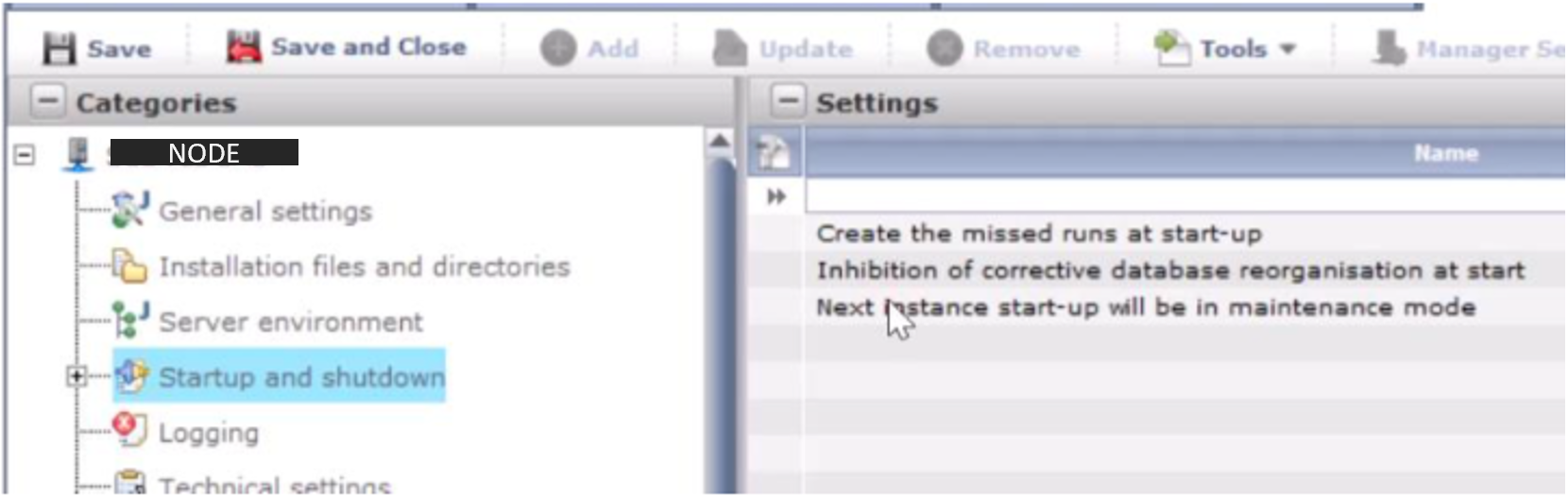 Navigate back to category “Startup and shutdown” and clear the filter