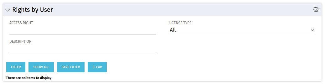 The portlet "Rights by User" does not return any results after adding it to a page: