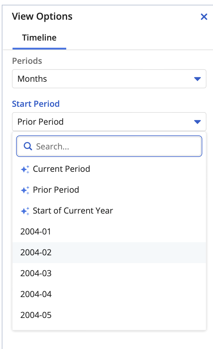 Start Period and End Period in the Clarity View Options display inactive fiscal periods.