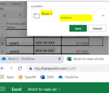 • However, per screen prints below, if you create a new file in O365 (ex: Word, Excel, etc.) and save the new file directly to the SaaS, it doesn't block.