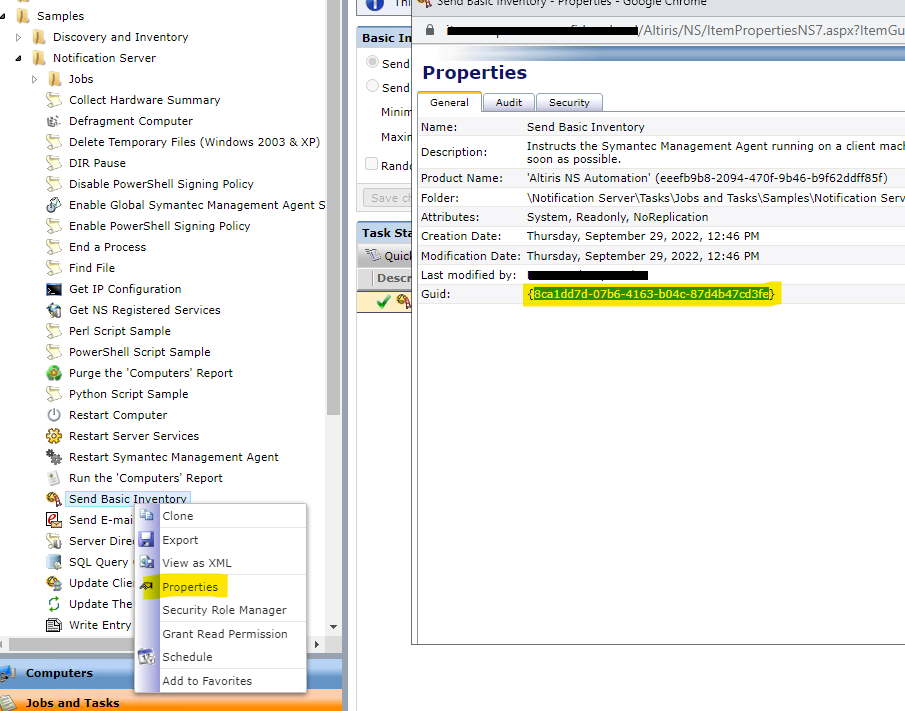 Note: You can usually find the GUID associated to an item by selecting the item>right-click>Properties and grab the GUID from the Properties UI that opens as seen here: