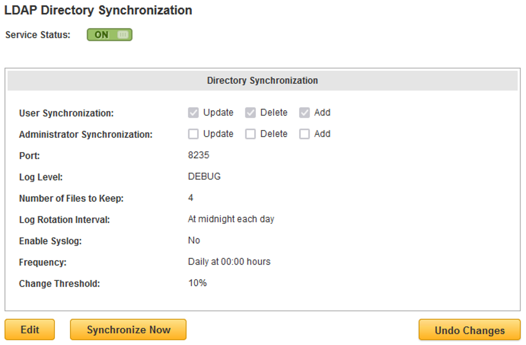 - Go to User Store tab > LDAP Directory Synchronization, and click on Synchronize Now (if not already synchronized)