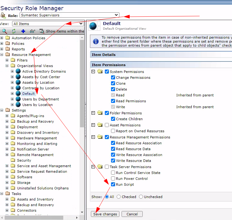 This allows the role to perform Run Script tasks to any resource within the Default organizational view.