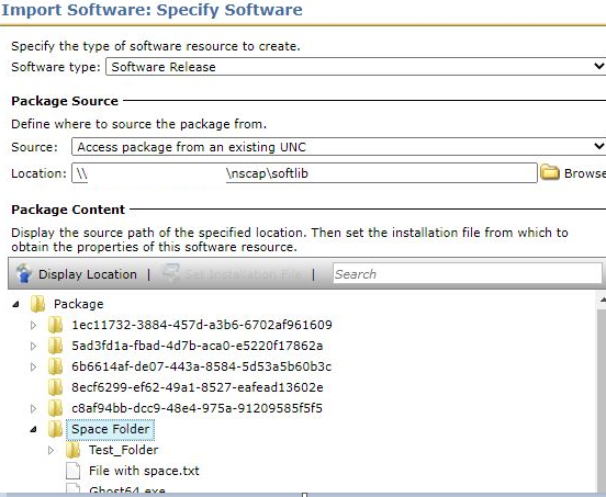 Multiple Packages imported into the SMP using "Access from existing UNC" containing a space in the folder name and file with spaces in the names: