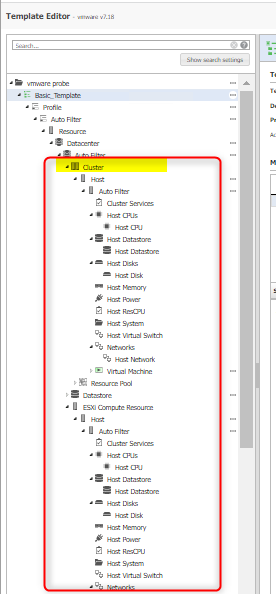 ESXi: If you set up the probe to connect to the ESXi server, configure the section of the template that is labeled "ESXi Compute Resource."
