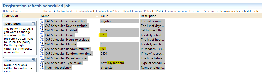 - Between 0 minute and 90 minutes after startup of caf (via "Registration refresh scheduled job" scheduler Task as post execution of "caf register")