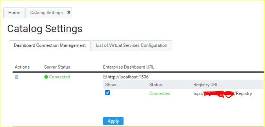 NOTE: If multiple registries are connected to the same dashboard then multiple registries are shown and provide an option to select specific registries. After clicking on Apply button, click on Home tab at the top left corner and then click on View Virtual Services as in the below screenshot and that will show the list of virtual services.
