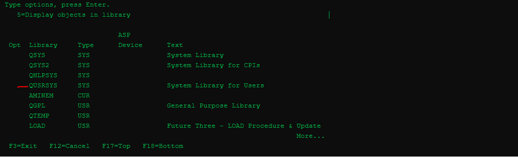 QUSRSYS is AS400 System Library for Users and it was missing from the library list