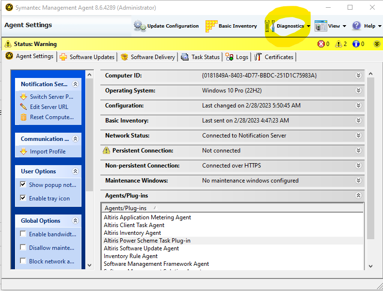 If the Agent Diagnostics option is turned on a client machine then the hidden Software Component will still be visible.