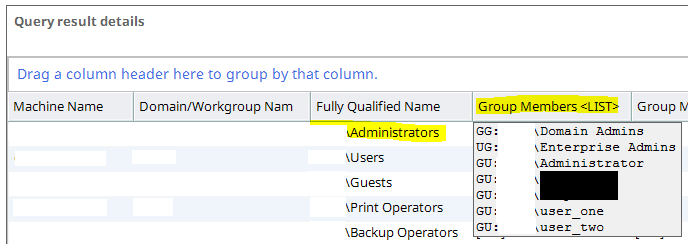 An example from my lab is below. I have created a couple of dummy users in my #####\Administrators group along with some default global groups.