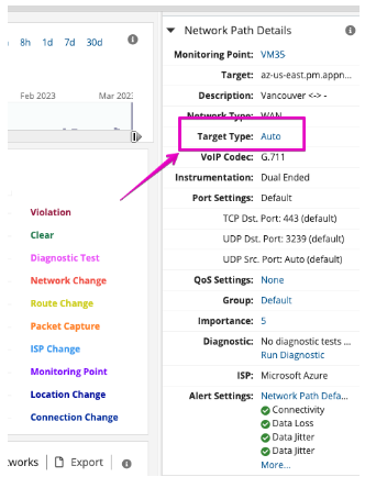 Target Type Auto will attempt to produce Voice Metrics by simulating voice traffic between a source and target.