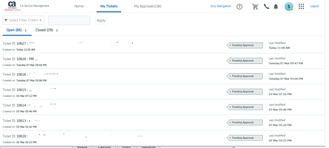 Is there any pagination setup for CA Service Point on My Tickets view?