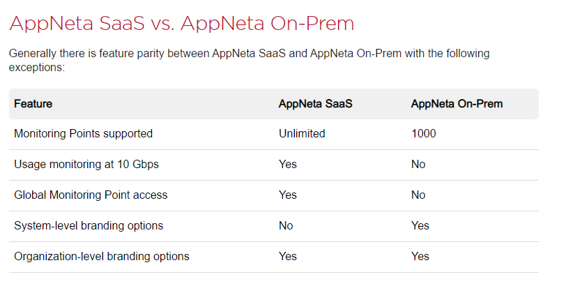 AppNeta On-Prem does have some differences compared to our SaaS Offering highlighted below: