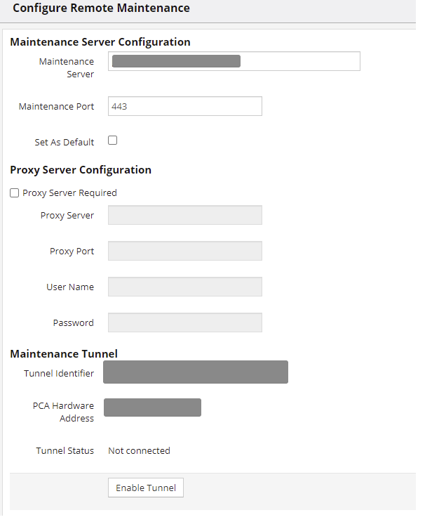 If the Remote Maintenance Page on the vPCA hasn't been populated before, below are the necessary details: