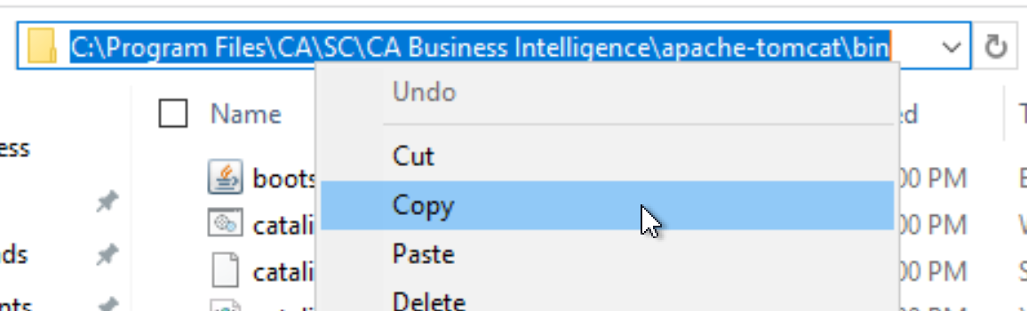 - The clipboard should contain a string such as C:\Program Files\CA\SC\CA Business Intelligence\apache-tomcat\bin
