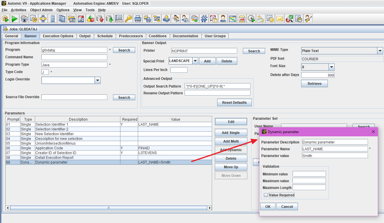 Unlike Jobs GLBDATA and GLBLSEL, which has the option 'Import Dynamic Parameters' button within the Banner tab, GLBDATAJ and GLBLSELJ currently does NOT have this option.
