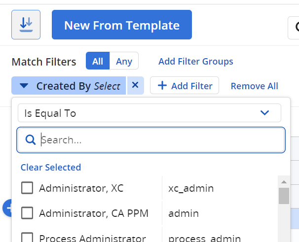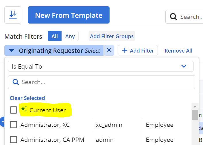We are trying to implement a view for Idea in Modern UX. We would like to see the "Current User" value in the Created By attribute in the filter.