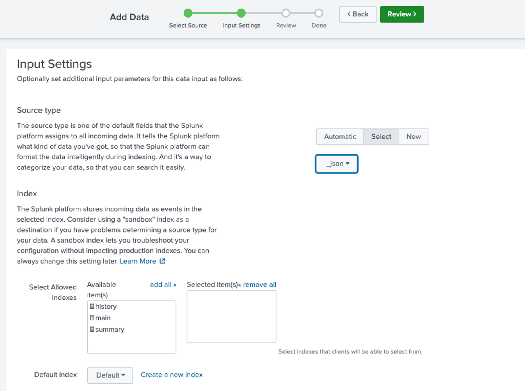 Under Settings > Data Input, select + Add New HTTP Event Collector