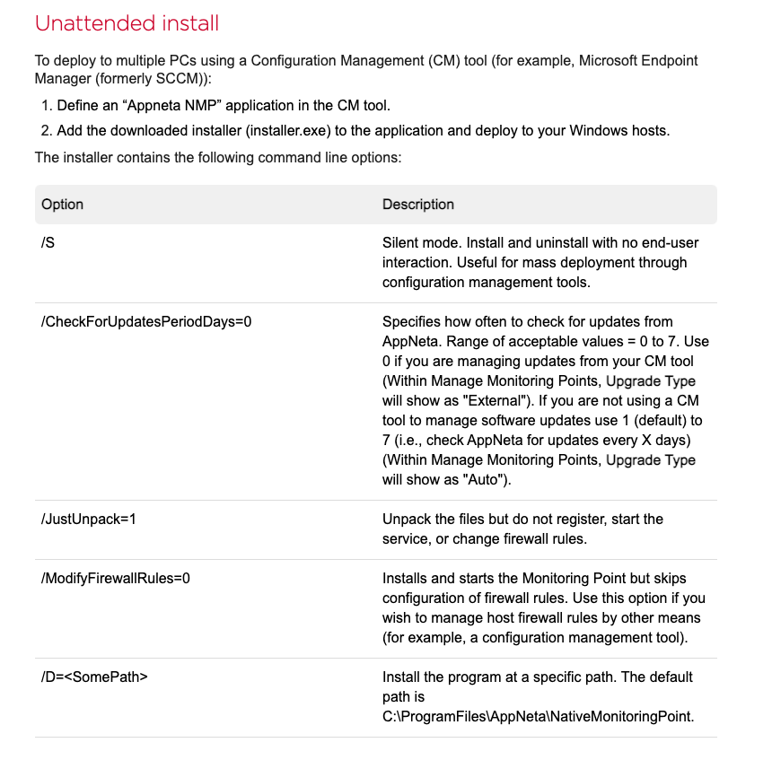 In order to support the External upgrade type, please note that monitoring points should be deployed with /CheckForUpdatesPeriodDays=0 (within Manage Monitoring Points).