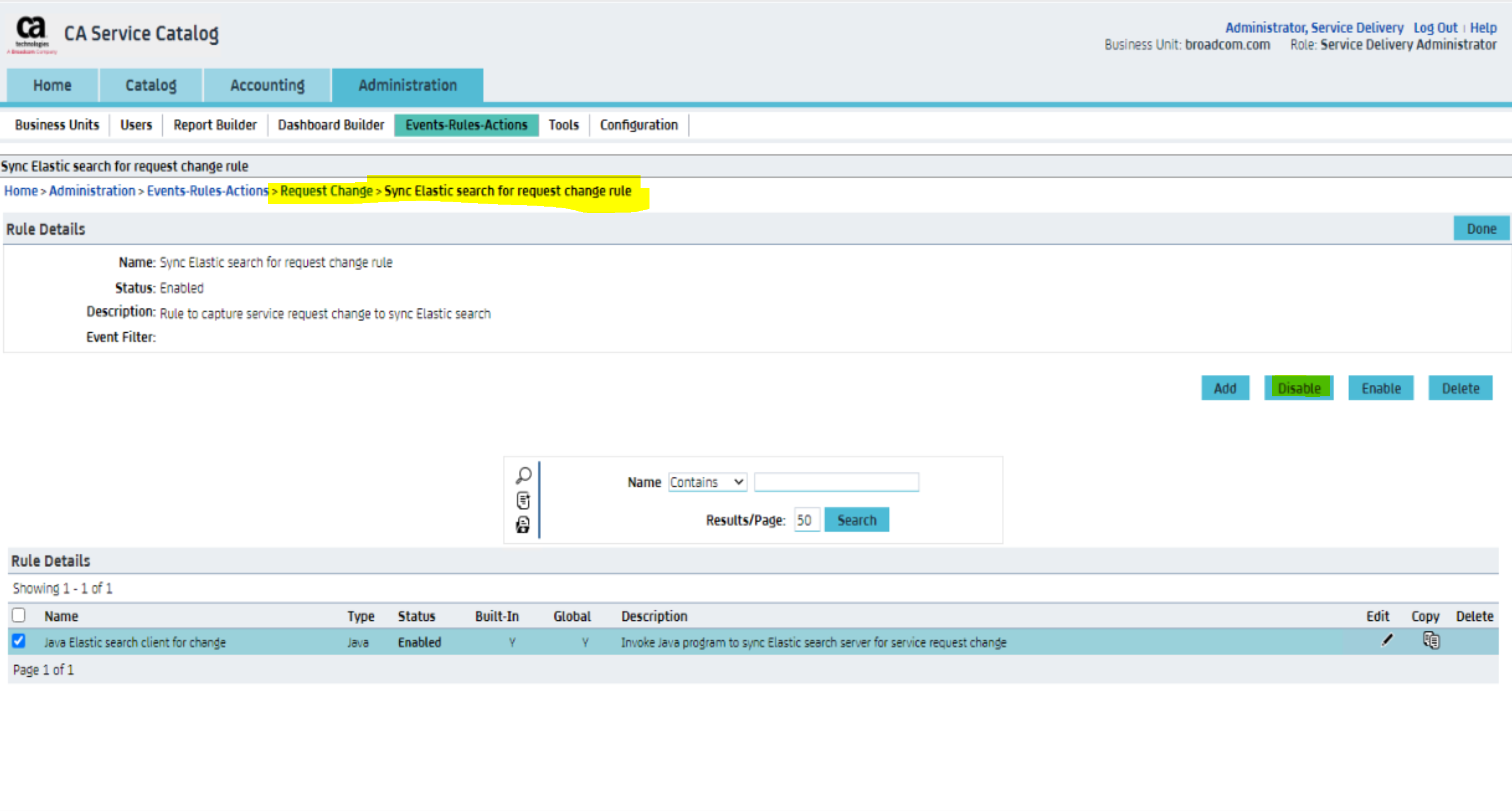 Under Administration -> Event-Rule-Actions, go to Request Change and select the Rule "Sync Elastic search for request change rule" and disable action under it.