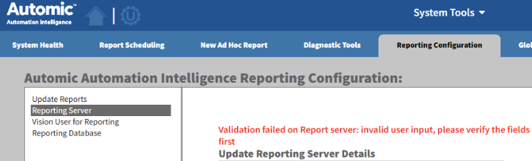 "Validation failed on Report server: invalid user input, please verify the fields first."