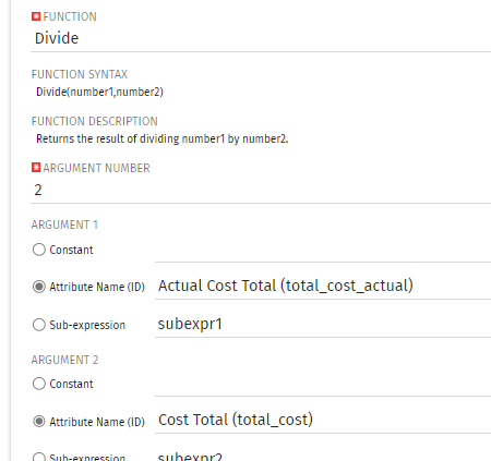 2. Create a calculated attribute: (total_cost_actual/total_cost)