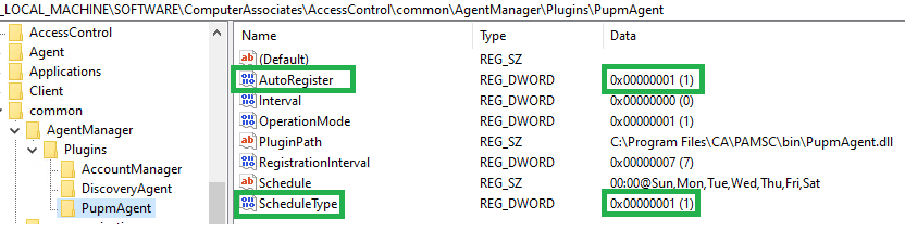 HKEY_LOCAL_MACHINE\SOFTWARE\ComputerAssociates\AccessControl\common\AgentManager\Plugins\PupmAgent