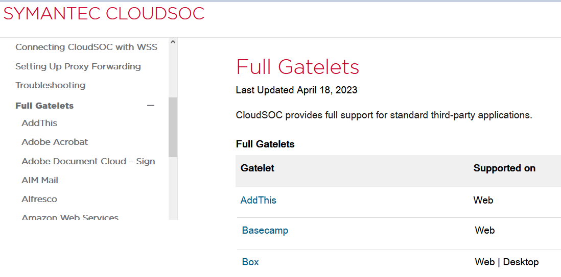 Broadcom offers limited detail in the Broadcom technotes as to which gatelets can support the desktop supported SaaS Agents.